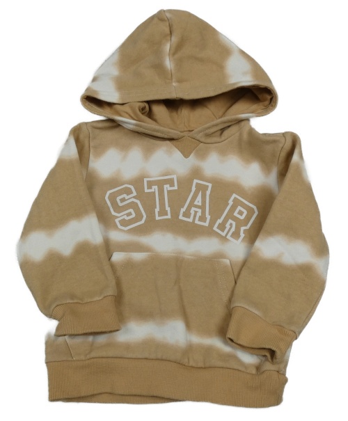 Hnědo-bílá batikovaná mikina s nápisem a kapsou a kapucí