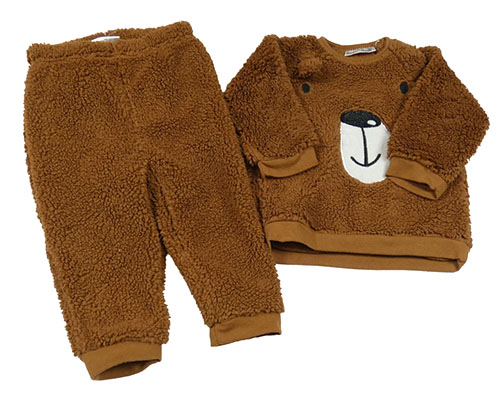2set - Hnědá chlupatá mikina s medvědem + tepláky Ergee