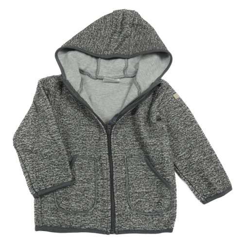 Šedo-bílá melírovaná pletená propínací mikina se smajlíkem a kapucí Topomini