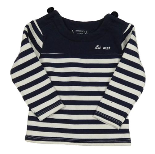 Tmavomodro-bílá mikina s pruhy a nápisem