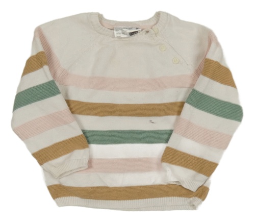 Bílo-béžovo-růžovo-zelený pruhovaný svetr Ergee