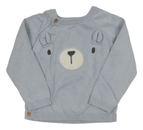 Světlemodrošedý propínací svetr s medvídkem Tu