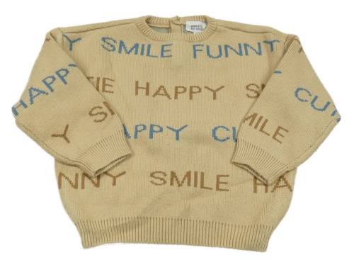 Béžový oversize svetr s nápisy CUDDLES AND SMILES