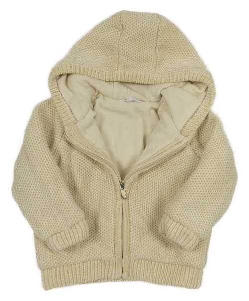 Světlebéžový vzorovaný podšitý propínací svetr s kapucí