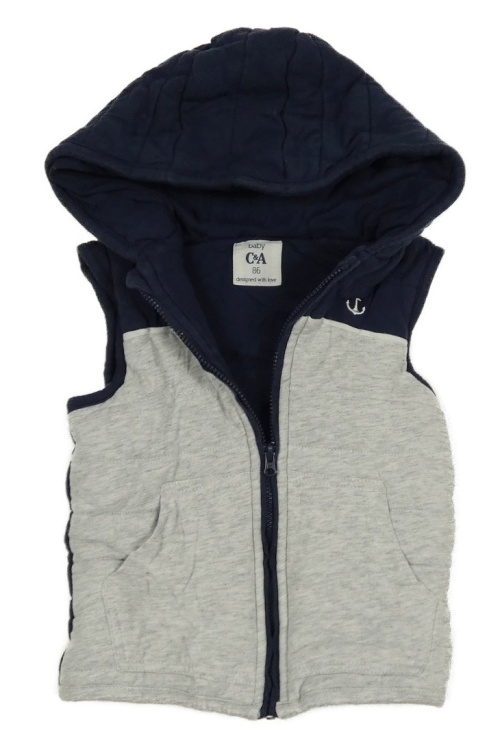 Šedo-tmavomodrá tepláková zateplená vesta s kapucí C&A