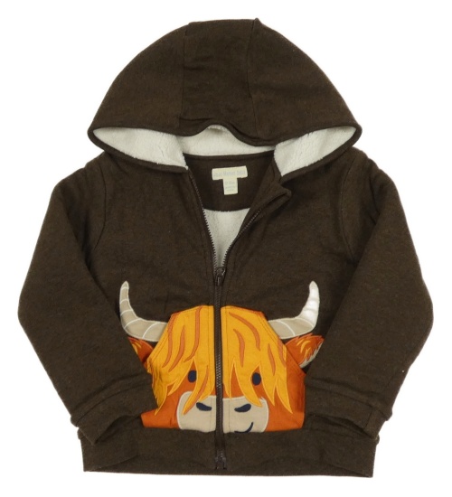 Hnědá propínací zateplená mikina s býkem a kapucí Jojo Maman Bébé