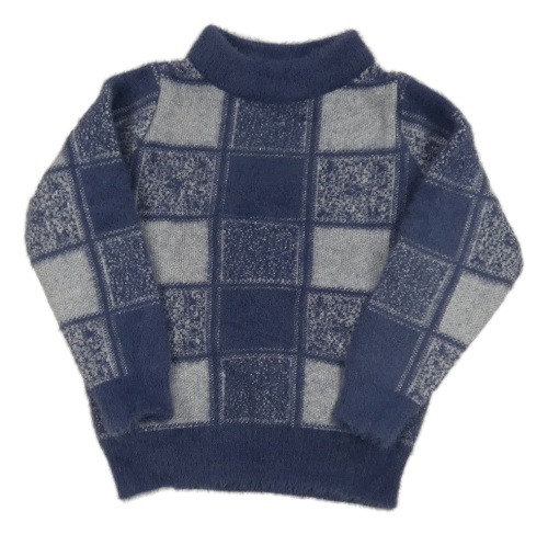 Šedo-tmavomodrý kostkovaný svetr