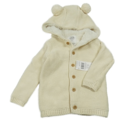 Nové - Krémový zateplený propínací svetr s kapucí s bambulemi F&F