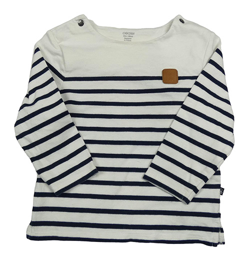 Bílo-tmavomodré mikinotriko s pruhy a nášivkou Obaibi