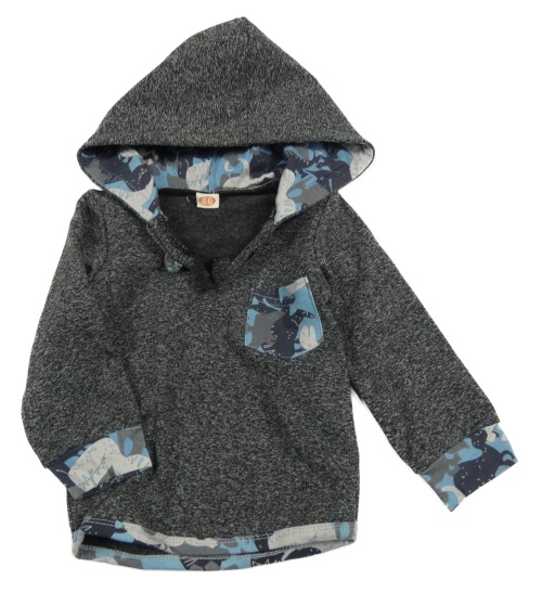 Černo-šedá melírovaná mikina s kapsou a kapucí