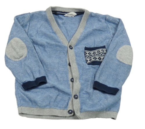 Modro-bílo-šedo-tmavomodrý pruhovaný propínací svetr se vzorovanou kapsou H&M