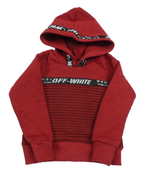 Tmavočervená žebrovaná mikina s pruhem s nápisy a kapucí