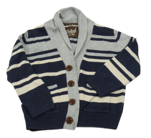 Tmavomodro-smetanovo-šedý pruhovaný propínací svetr Rebel