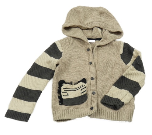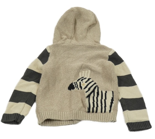 Béžovo-pruhovaný propínací svetr se zebrou a kapucí Next