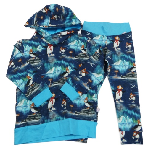 2set - Tmavomodro-tyrkysová mikina s tučňáky a kapucí + kalhoty