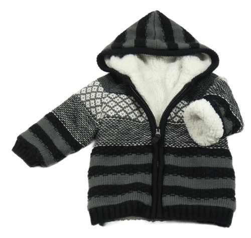 Šedo-čero-bílý vzorovaný zateplený propínací svetr s kapucí Nutmeg