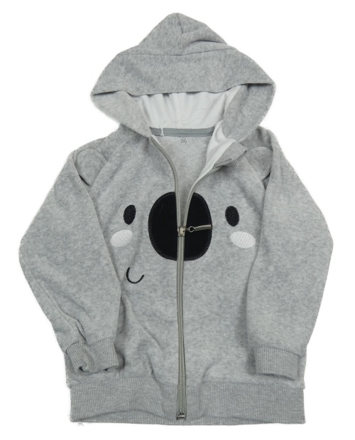 Šedá sametová propínací mikina s čumáčkem a kapucí