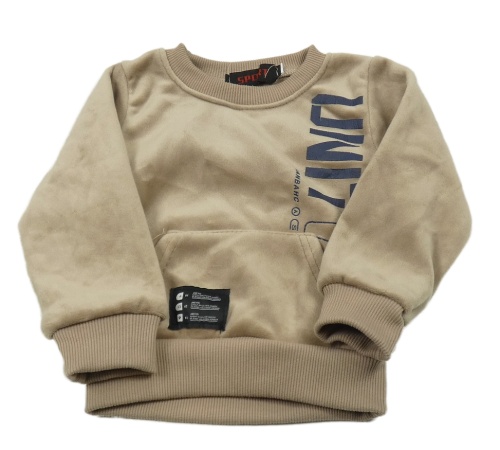 Světlehnědá plyšová teplá mikina s nápisem a kapsou