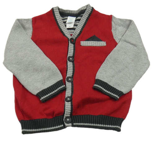 Červeno-šedý propínací svetr C&A