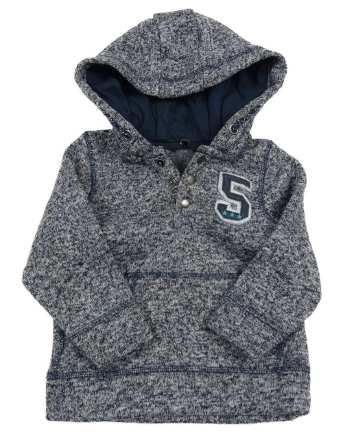 Tmavomodro-šedá pletená thermo mikina s číslem a kapucí