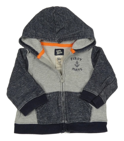 Šedo-modro žíhaná propínací mikina s kapucí