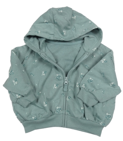 Zelenošedá propínací crop mikina s kytičkami a kapucí Dunnes