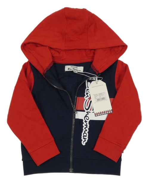 Nové - Tmavomodro-červená propínací mikina s logem a kapucí Ben Sherman