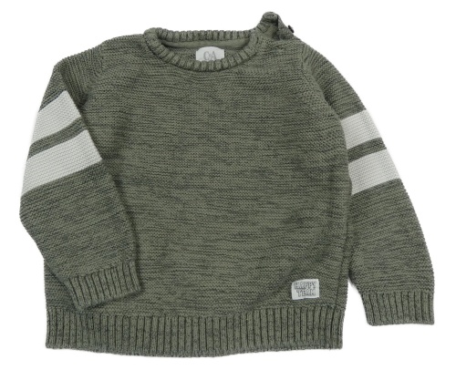 Khaki melírovaný svetr s pruhy na rukávech C&A