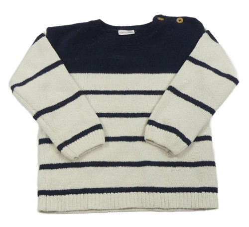 Světlebéžovo-tmavomodrý svetr s pruhy F&F