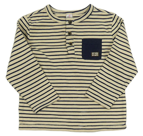 Světlebéžovo-tmavomodré pruhované mikinotriko s kapsou s nášivkou Topomini