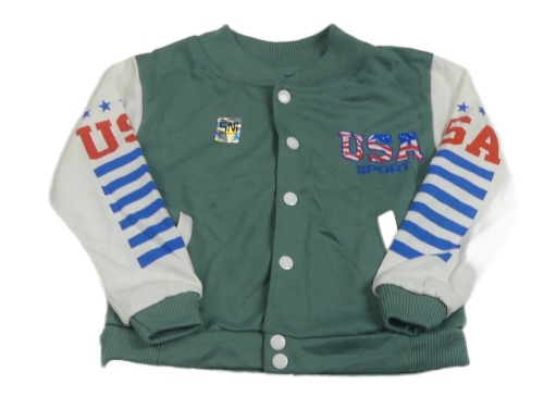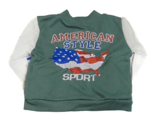 Khaki-bílá propínací mikina s nápisem a pruhy na rukávech