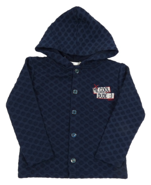 Tmavomodrá vzorovaná propínací mikina s nápisy a kapucí BREEZE