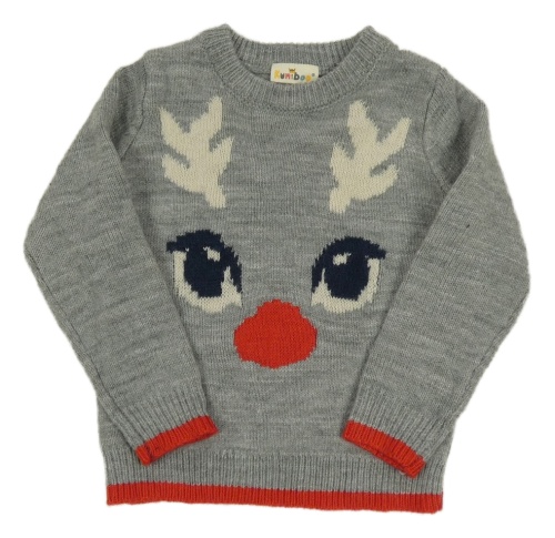 Šedo-červený melírovaný pletený svetr se sobem Kuniboo
