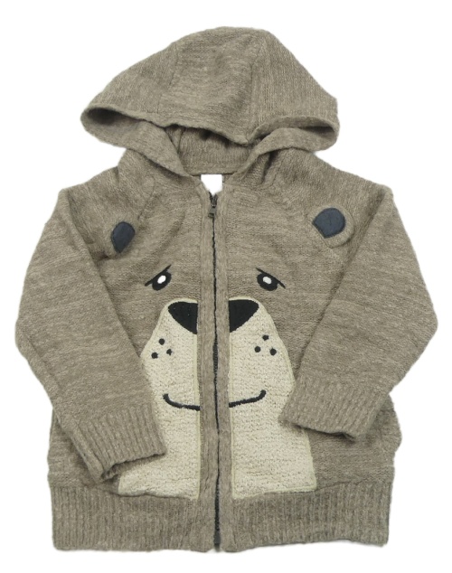 Šedý propínací svetr s medvědem a kapucí Tu