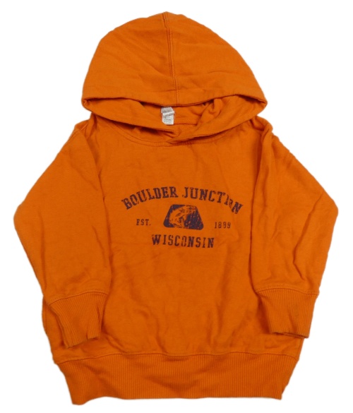 Oranžová mikina s nápisem a kapucí