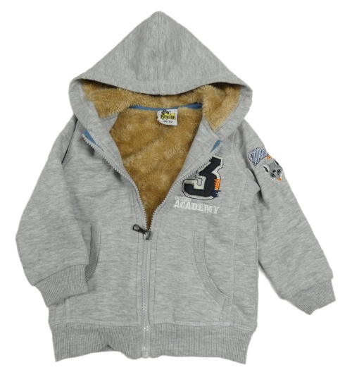 Nové - Šedá propínací zateplená mikina s číslem a kapucí Papagino