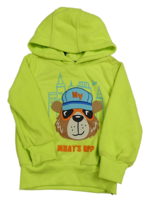 Neonově zelená fleecová mikina s medvídkem a kapucí Kiki&Koko