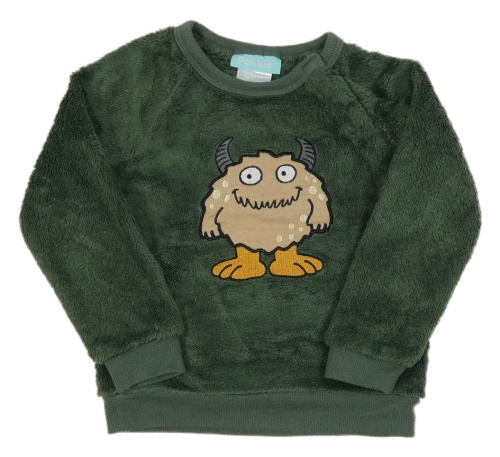 Tmavozelená chlupatá mikina s příšerkou Pekkle