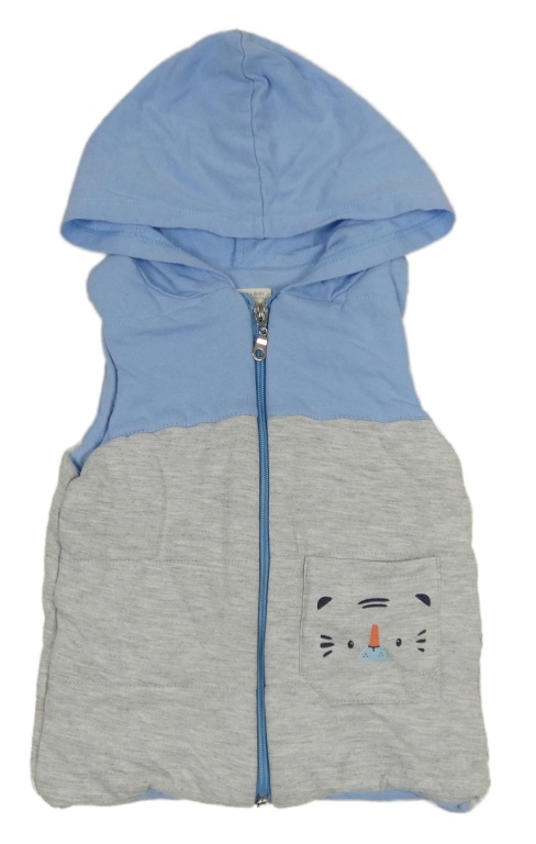 Šedo-modrá zateplená tepláková vesta s kapucí