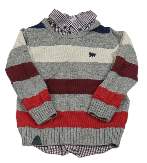 Šedo-vínovo-červený pruhovaný svetr s košilovými prvky Jasper Conran