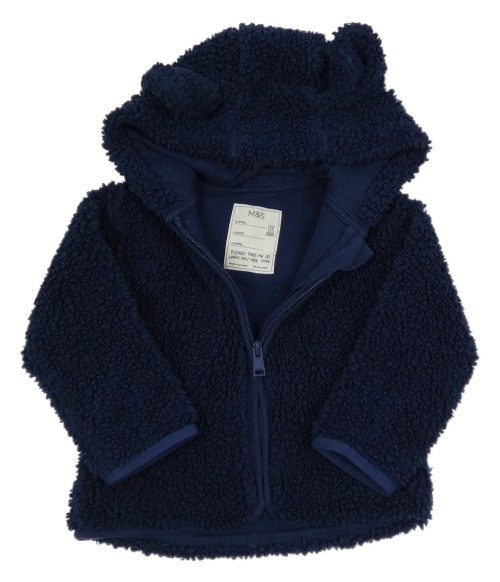 Tmavomodrá huňatá propínací podšitá mikina s kapucí a oušky M&S