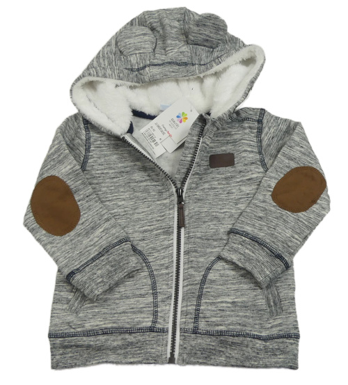 Nové - Šedá melírovaná propínací mikina s nášivkou a kapucí Topomini