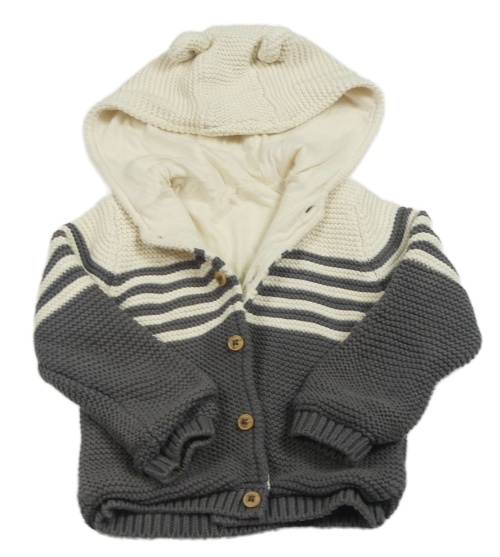 Bílo-šedý pruhovaný podšitý propínací svetr s kapucí M&S