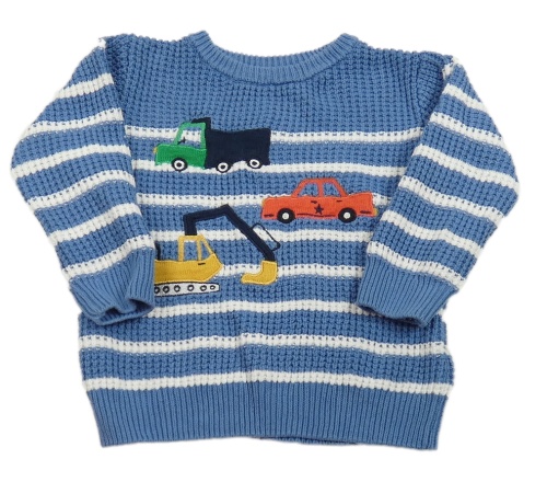 Modro-bílý pruhovaný svetr s auty Nutmeg