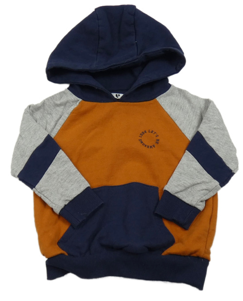 Rezavo-šedo-tmavomodrá mikina s nápisem a kapucí V by Very