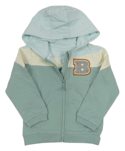 Světlemodro-bílo-zelená propínací mikina s písmenem a kapucí M&S