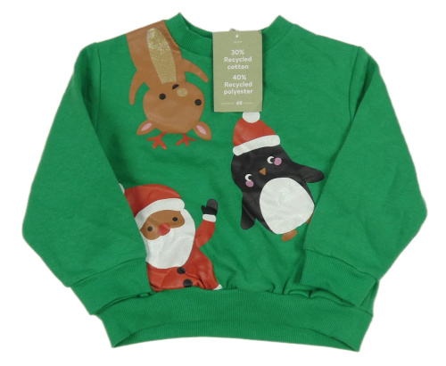 Nové - zelená vánoční oversize mikina se Santou a sobem a tučňáčkem H&M