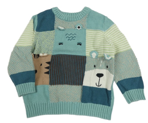 Modro-zeleno-béžový kostkovaný svetr se zvířátky George