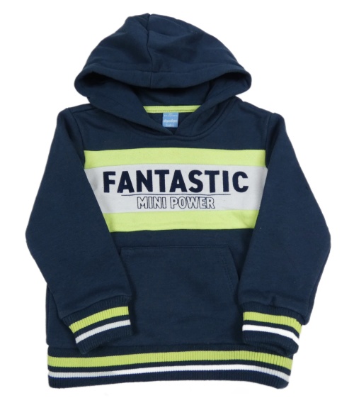 Tmavomodro-bílo-zelená mikina s nápisem a kapucí Dopodopo