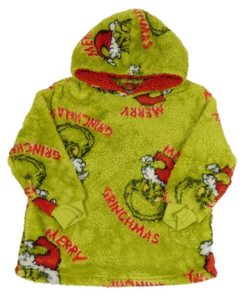 Světlezelená chlupatá oversize mikina s Grinchem a kapucí